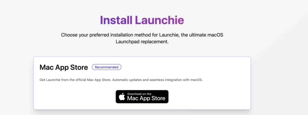 Note : Au moment de la rédaction, Launchie est principalement distribué via l’App Store. Vérifie la disponibilité Homebrew.