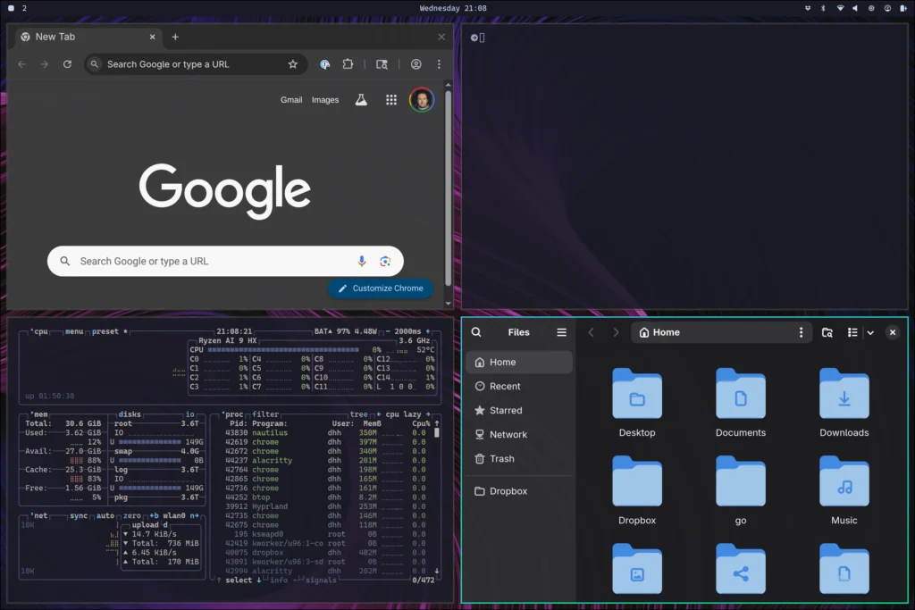 Les moins : ❌ Courbe d’apprentissage Hyprland