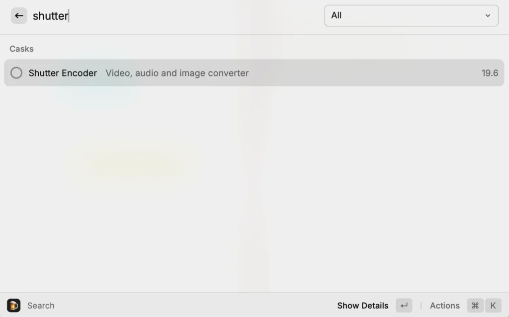 Note : Au moment de la rédaction, Shutter Encoder n’est pas officiellement dans Homebrew Cask. Si la commande échoue, utilise le téléchargement direct.